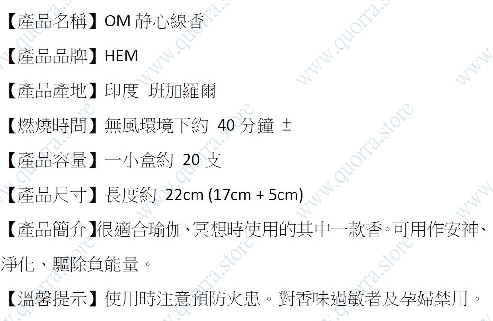 印度 HEM OM 静心線香 (瑜伽、冥想、安神、淨化、驅除負能量)