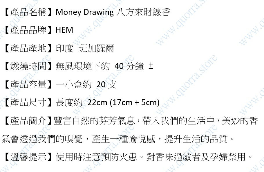 印度 HEM Money Drawing 八方來財線香 (金錢、好運、家用供香、香薰)